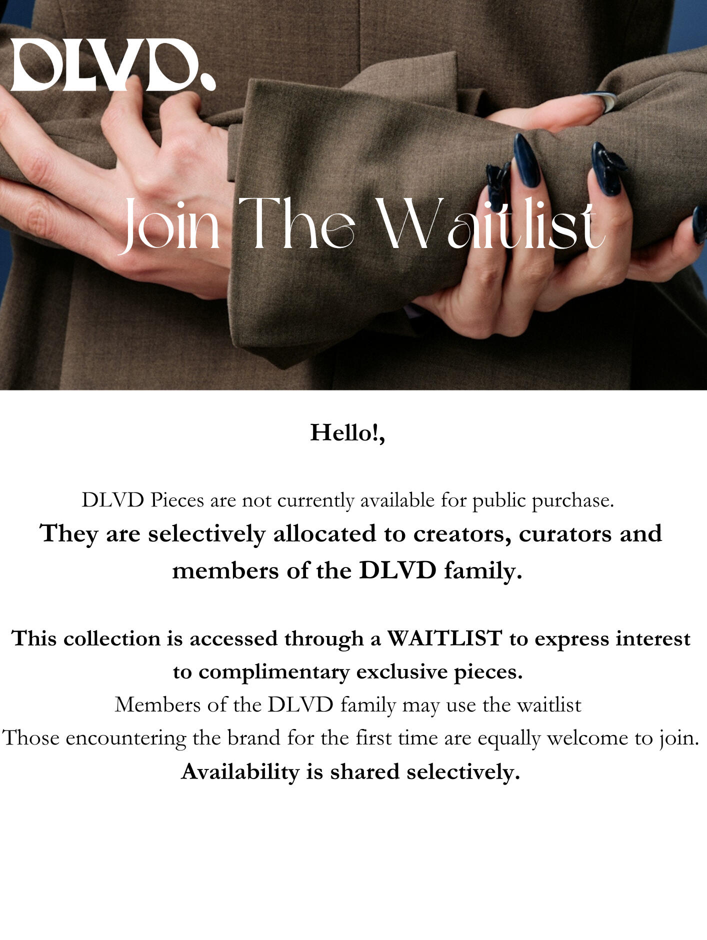JOIN A GROWING CIRCLE OF CREATORS, CURATORS, AND QUIET DISRUPTORS SHAPING WHAT FASHION MEANS NEXT. FROM INTIMATE RELEASES TO DEEPER STORIES,YOU WILL HEAR IT HERE FIRST.